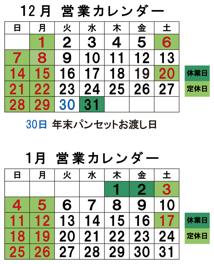 毎週日曜日・月曜日、第1,3土曜日